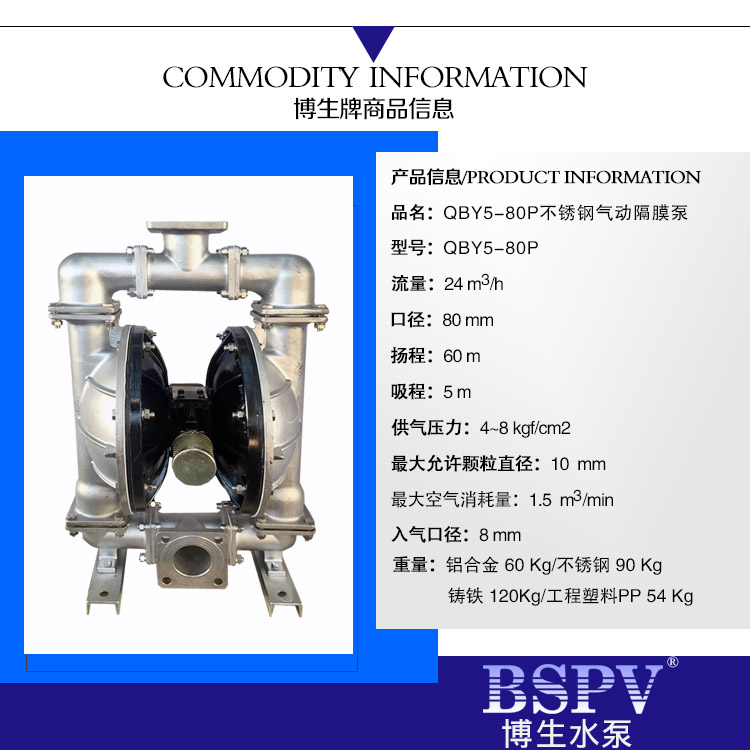 QBY5-80P型不銹鋼氣動(dòng)隔膜泵